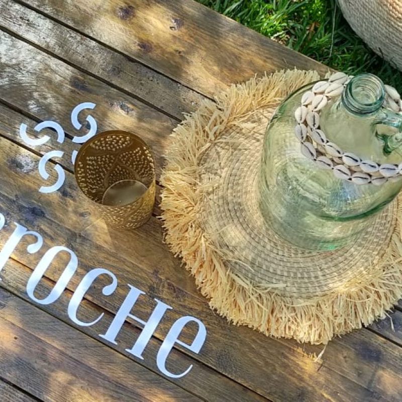 We work with an inventory of authentic African craft props: hand-woven raffia wall baskets, boho placemats, picnic pouffes, sisal rugs, carved wood pieces, mud cloth panels, and more. These aren’t props sourced from a catalogue. They’re pieces with real provenance, applied with a real eye for how they work together in a space.