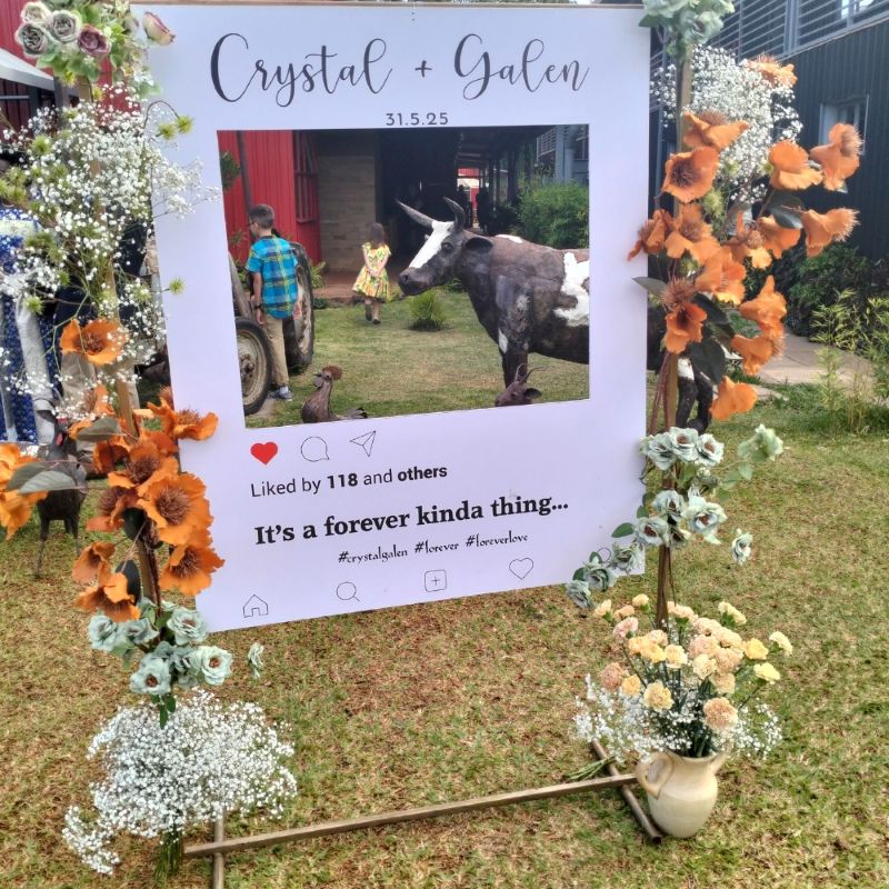 No rustic Nairobi wedding is complete without a moment your guests will queue for, and this one delivered. We set up a custom Instagram-themed photo wall decked in florals from the same earthy palette. It became the most visited spot at the reception. Guests were lined up all evening, and the photos were magnificent.